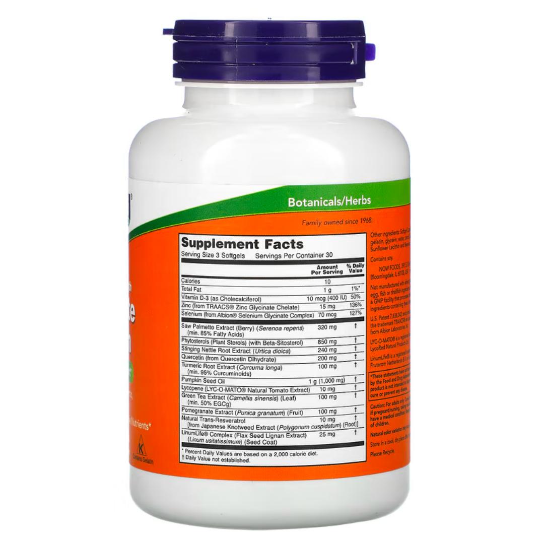 Features saw palmetto extract, beta-sitosterol, lycopene, zinc, selenium, and vitamin D-3 for optimal prostate function.